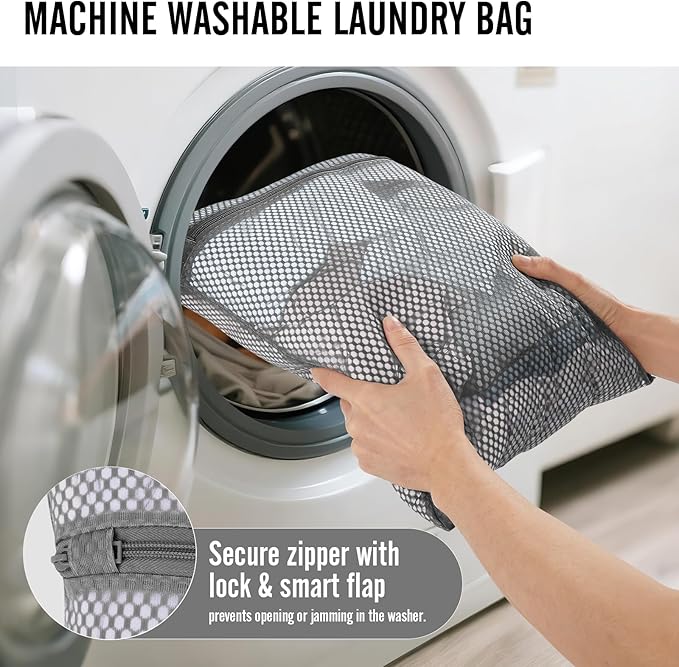 - Versatile Laundry Bag: Made with breathable mesh, the included laundry bag doubles as a washing bag—suitable for tossing straight into the washing machine. A smart zipper guard keeps it securely closed during cycles, reducing fabric tangling and wear to extend the life of your clothes.