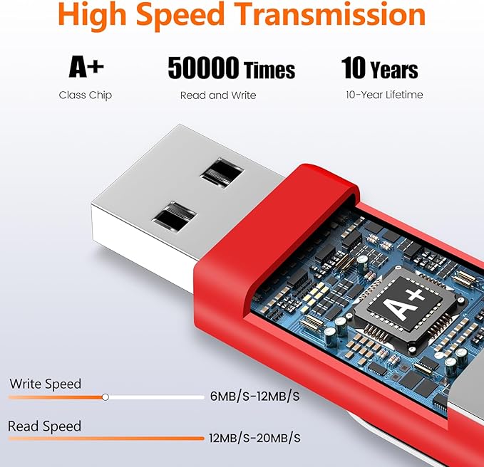 - STABLE & FAST TRANSMISSION: The 2GB USB 2.0 memory stick adopts Grade A+ chips, read speed of 12-20 MB/s and a write speed of 6-12MB/s.It resists temperature fluctuations and X-ray, ensuring data integrity and preventing loss