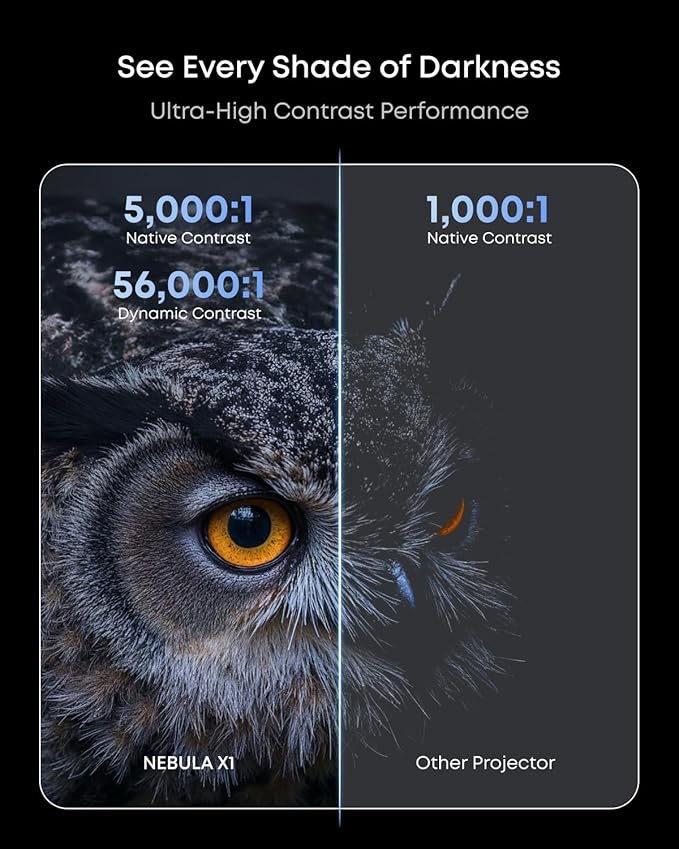 - See Every Shade of Darkness with Ultra-High Contrast: A 6-blade iris delivers a native contrast ratio of 5,000:1, enhanced by NebulaMaster technology to reach an impressive 56,000:1.