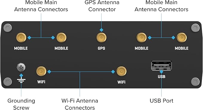 - Included Components : Router, 2 x WiFi antennas, 1 x GNSS Antenna, 4 x Mobile Antennas, Power Supply, Ethernet Cable, SIM Adapter Kit Router, 2 x WiFi antennas, 1 x GNSS Antenna, 4 x Mobile Antennas, Power Supply, Ethernet Cable, SIM Adapter Kit