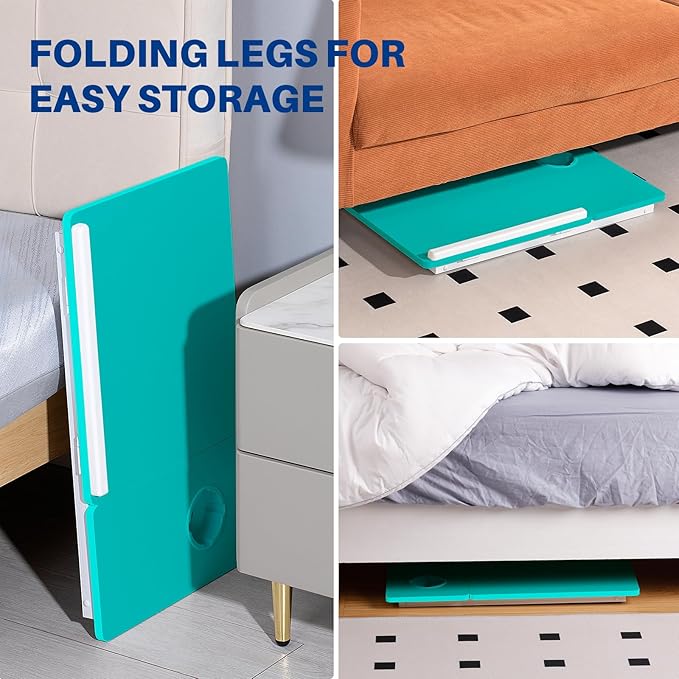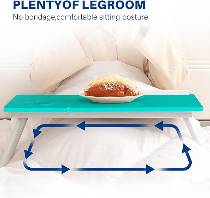 Laptop Desk for Bed Couch, Adjustable Foldable Bed Table with Cup Holder, Breakfast Serving Tray, Portable Laptop Lap Desk Stand for Working Reading Writing Eating Gaming (Blue)