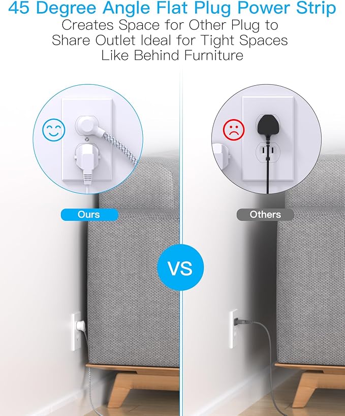 - 【Multiple Safety Protection】Our power strip are certified by ETL and FCC, high-quality components, 1382℉ fireproof, the power strip can prevent your electric devices from over-current/over-charge/short circuit/over-heated.
