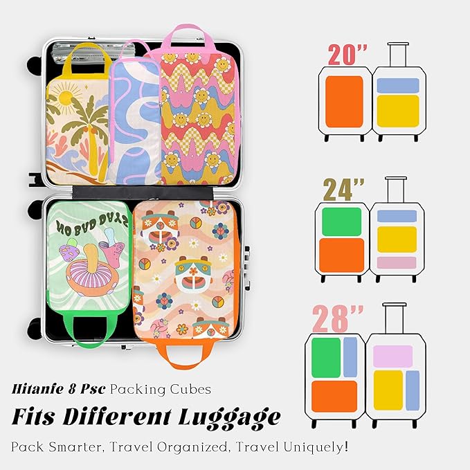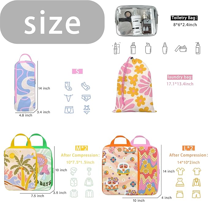 - Ideal Design for Travel Packing Cubes: Are you tired of rummaging through a jumble of clothes to find your T-shirts while traveling? Worried about leaving valuables behind in your hotel room? With our compression travel cubes, these worries disappear. Each packing cube features a unique pattern design, which makes it easy to find clothes while allowing you to have your own travel style and stay organized easily