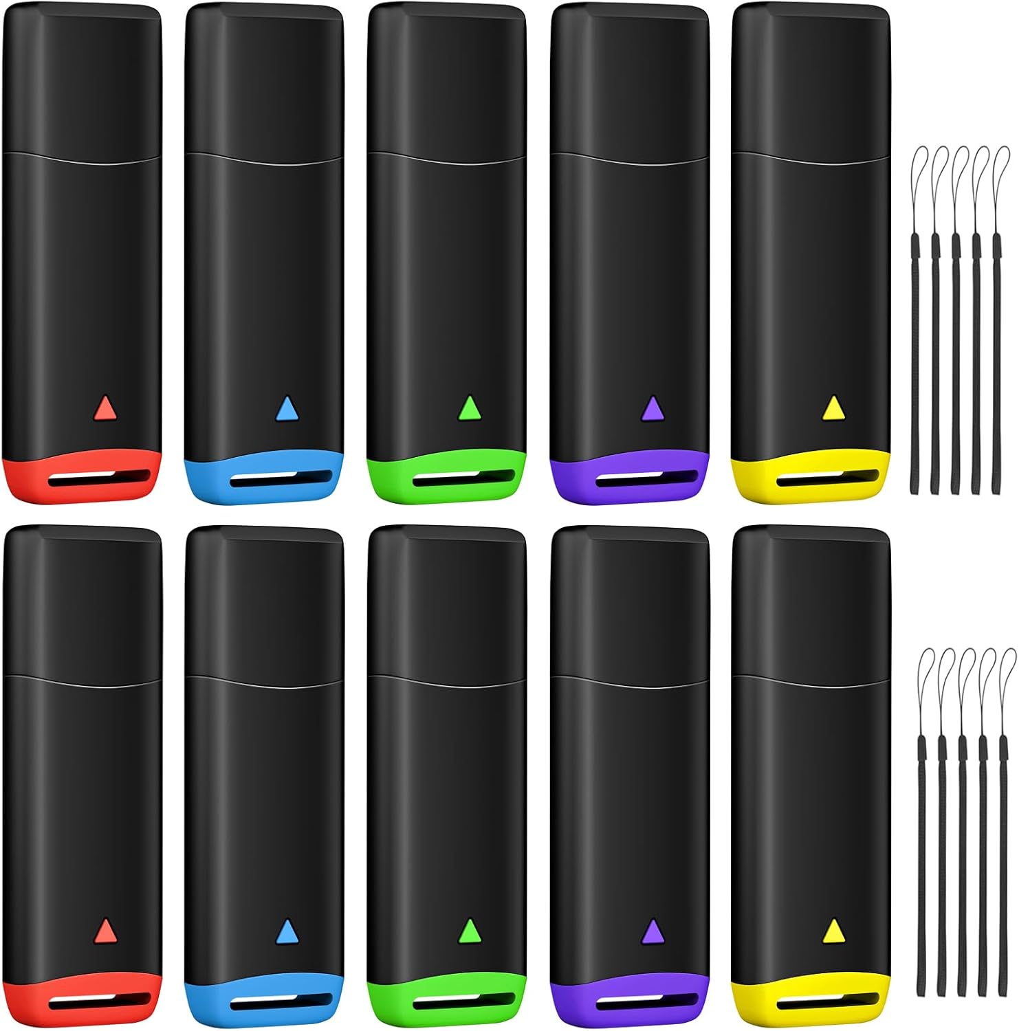 - What are you Get: 16GB USB drive 10 pack (mixed colors: blue yellow red purple green) and black lanyards. Note: The default format of the USB 16GB flash drive is FAT32
