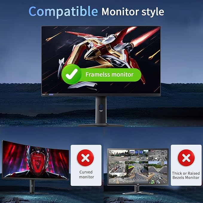 - 【Perfect fit for 24 inch frameless monitors 】Designed for 24 inch monitors (16:9 aspect ratio) with dimensions of 12" (304.5mm) in height and 21.2" (538.4mm) in width. ❗❗ Note: To avoid wasting your time by returning or exchanging, please check the width and height dimensions of your monitor screen before ordering. Dimensions exclude the bezel and ❌ Not suitable for curved monitor.