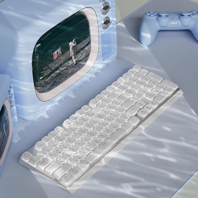EWEADN MK100 Wireless Low Profile Mechanical Keyboard, Bluetooth/2.4GHz/USB-C Wired with White Backlight Quiet Mechanical Keyboards Wireless, Full-size keyboard for Game/Office, Windows, Mac, White