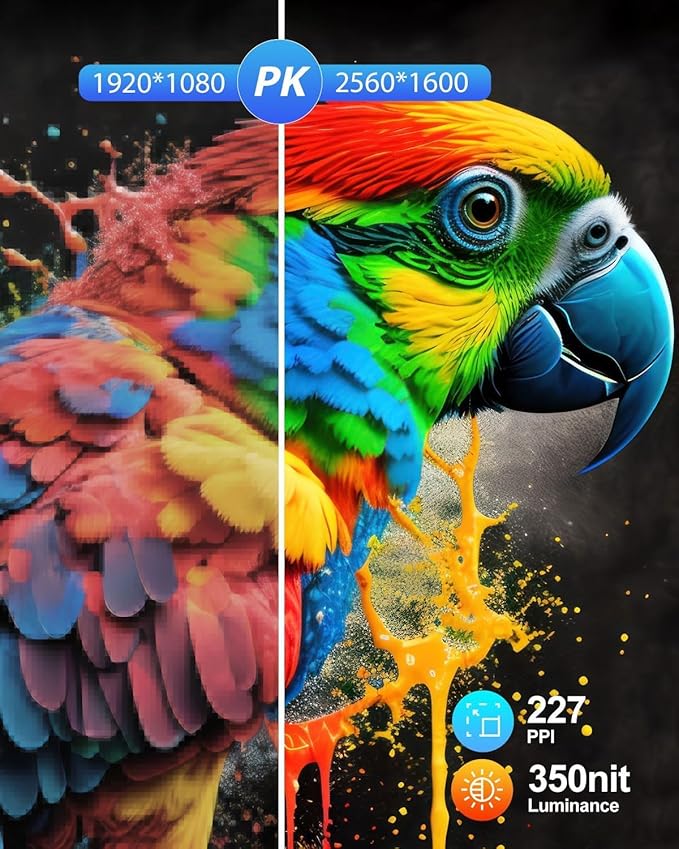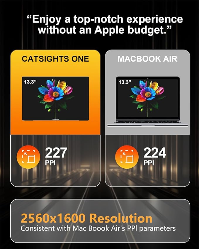 - 【Matched Specs with MacBook Air Display】 Featuring a premium 13.3” IPS screen with: 2560×1600 resolution (227 PPI) 350-nit brightness 178° ultra-wide viewing angles. Identical to MacBook Air’s Retina display (13.6” 2560×1664/224 PPI) for seamless visual consistency.