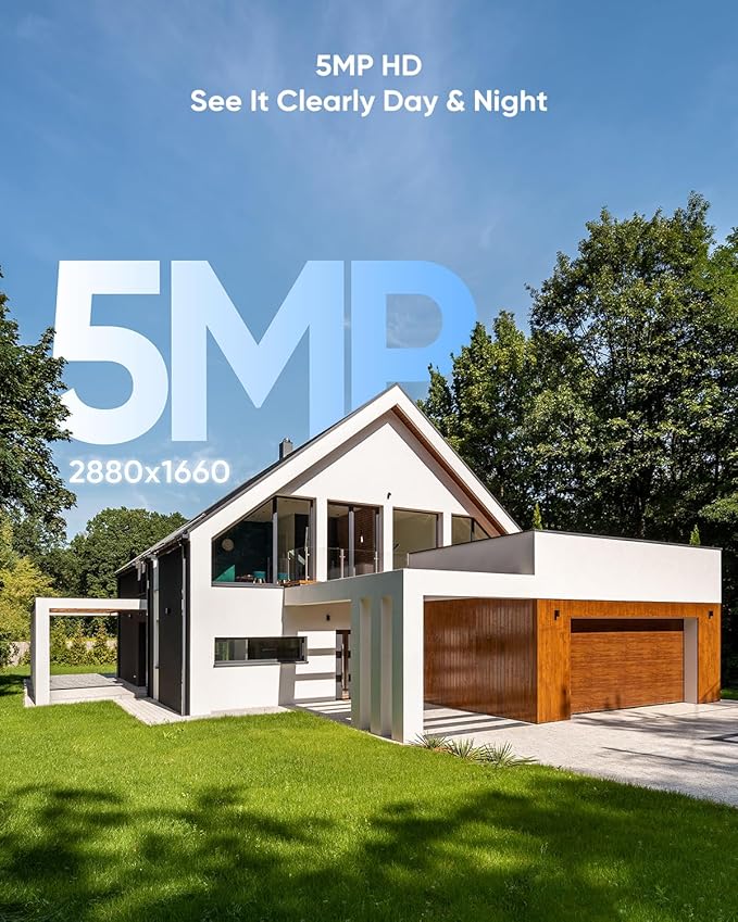 - 5MP Super HD, Enhanced Image Tech: Equipped with 1/3" Progressive Scan CMOS sensor, this security system provides 5MP(2880x1620) crystal-clear vision day/night. BLC/3D DNR/HLC image tech ensures you get clear and detailed footage without missing any details.