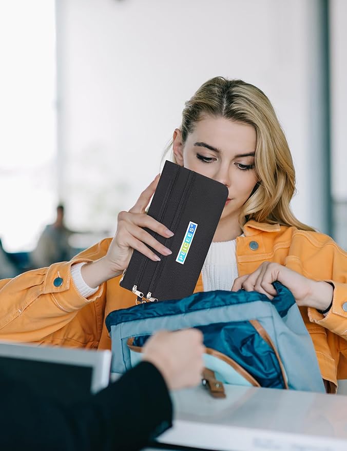 - RFID Blocking: Organize currency, passport and cards with RFID shielded pouches. Anti-RFID (radio frequency identification), protect personal privacy, and prevent bank card theft.