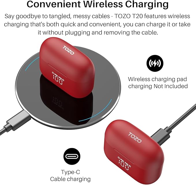 - [Immersive Stereo Sound] TOZO T20 features a 10mm diameter speaker with the latest dynamic horn loudspeaker and larger dynamic drivers. The upgraded T20 speaker diaphragm area is 56.3% larger than the previous generation, bringing better low-frequency performance, making the sound fuller and more vivid than ever, and the sound field is wider, providing you a truly immersive listening experience.