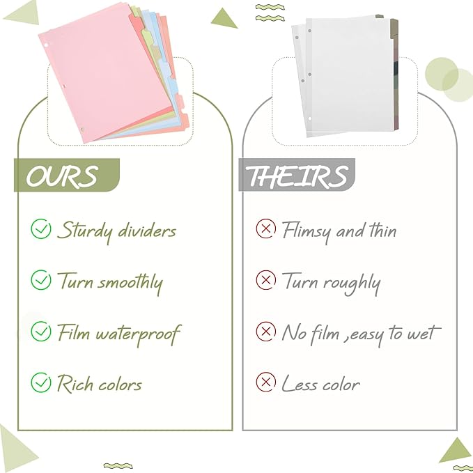 - Thick Paper and Plastic Material: the binder divider is made of quality thick paper and plastic, which are reliable and strong, not easy to break or bend, can serve you for a long time; When you are writing, the ink will not penetrate to the back side