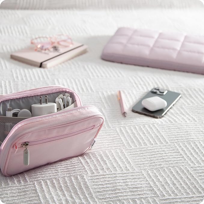 U Brands Dual Zip Canvas Tech Organizer Pouch, 7.8" x 5" Cord Organizer, Computer Accessories, Travel Essentials, Travel Gifts for Men Who Have Everything, Electronics, Petal Pink
