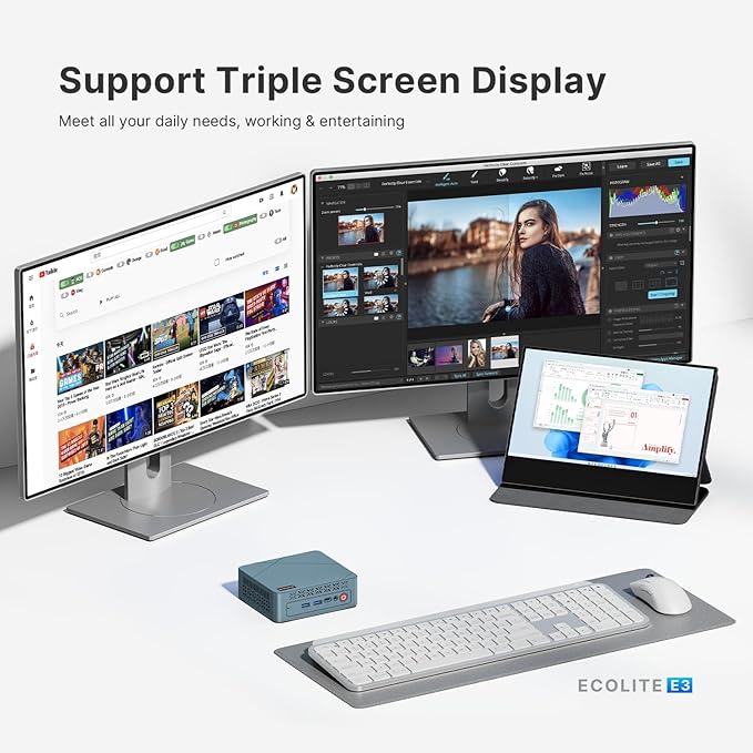 - [Large Storage Capacity, Easy Expansion] - E3 N150 Mini Computer is equipped with a 16GB DDR4 and a 512GB M.2 2280 SSD, which allows the small PC to run several high performance operations simultaneously. This means you can easily store and access a large amount of files, media, and data