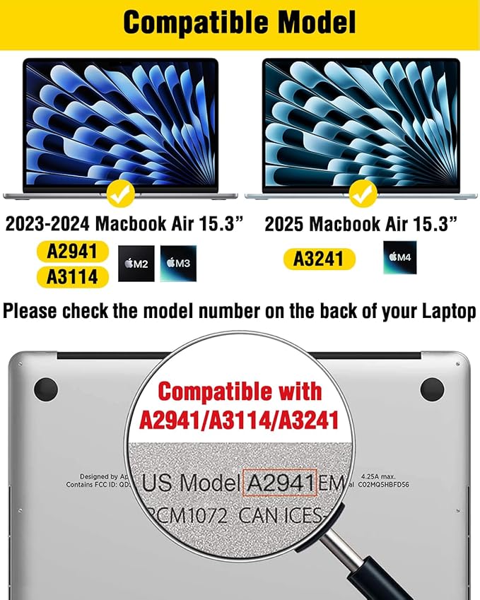 - Compatible Devices : MacBook Air 15.3 Inch(2023-2025) (Model: A3241, A3114, A2941)