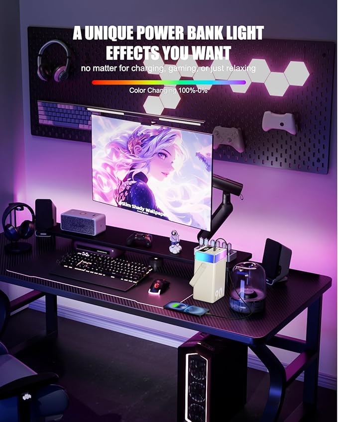 - 2. 35W PD QC 3.0 Power Bank Fast Charging: Recharge iPhone to 50% in 18 minutes; Auto-adjusts power for AirPods (7.5W), Switch 2 (30W), and VR headsets; Overheating/short-circuit protection tested in extreme temperatures; Military-grade lithium cells (1,000+ charge cycles, UN38.3 safety tested); A clear smart display tracks real-time stats: % remaining;