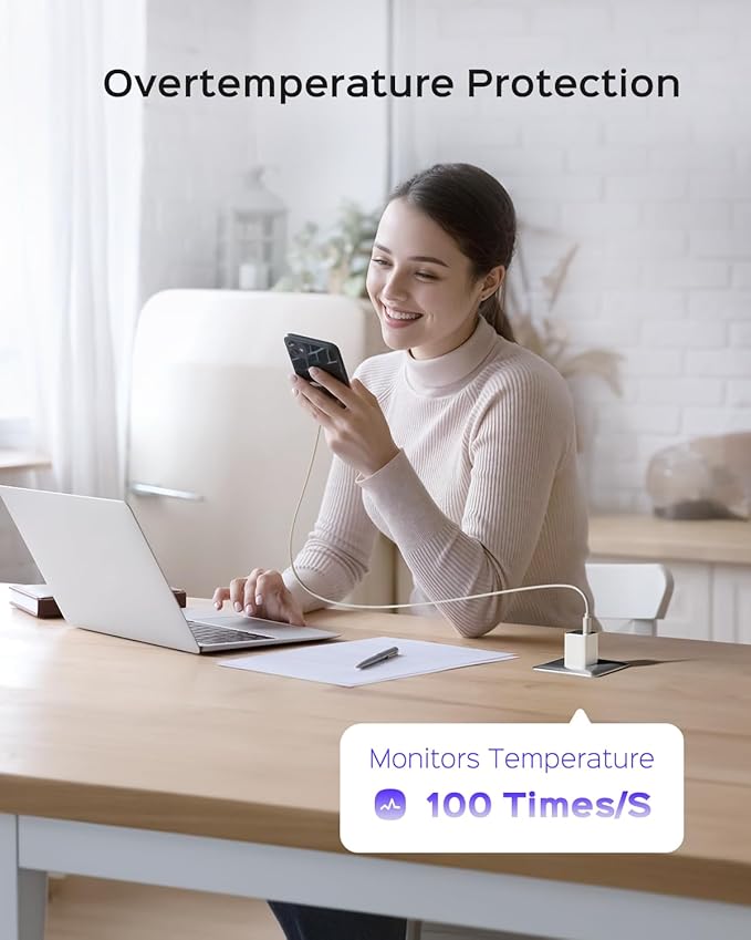 - 【ETL-Certified Safety & 8-Layer Protection】Intertek ETL listed (US/CAN standards) with 8 safeguards: Over-voltage, Short-circuit, Overload, ESD, and Real-Time Temp Control (100x/sec monitoring). Safe for overnight charging.