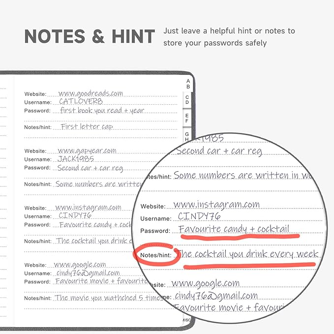 - Never Forget a Password Book Again -This is the best password book to store all your passwords safely in one place, protect your login info from hackers efficiently!