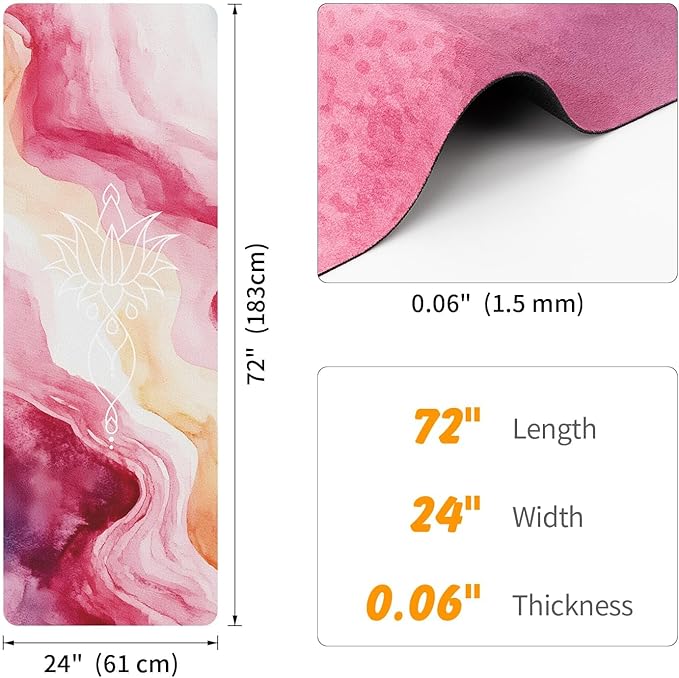 - Material: Our yoga mat is made of natural rubber with a soft and breathable suede fabric, easy to fold and store