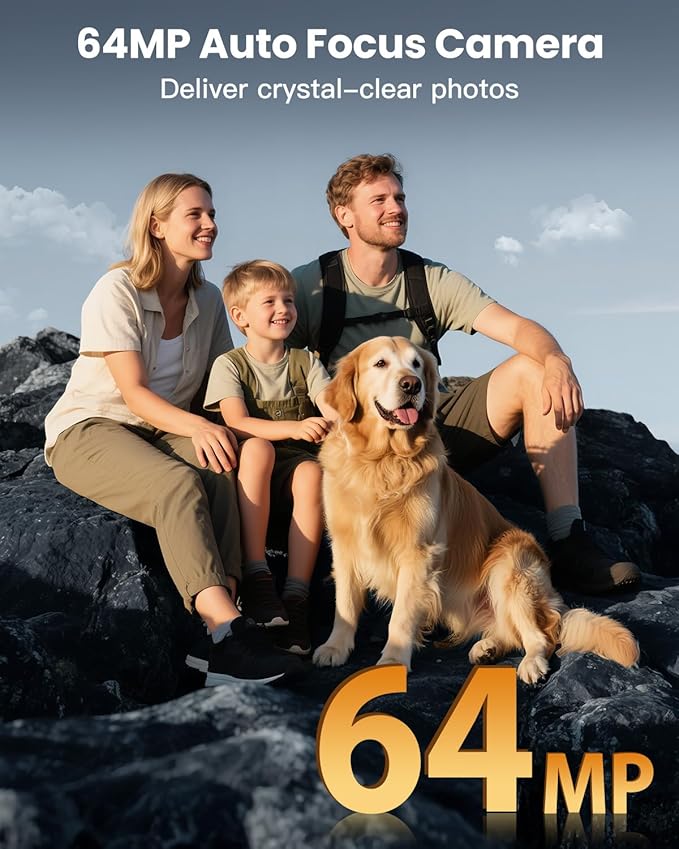 - 【64MP 4K Digital Camera with Autofocus】 The newest 4K digital camera for photography captures Ultra HD 4K videos and high-quality 64MP photos with vibrant colors, which is suitable for recording family activities or shooting vlogs. Equipped with the auto focus and 16X digital zoom, this digital photo camera captures stunning photos with ease.