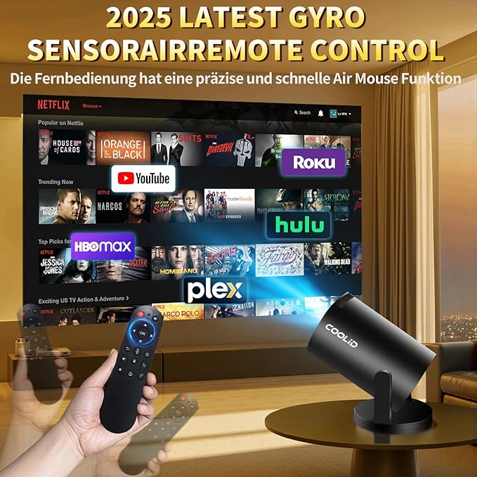 - 【Smart Projector with Built-in Apps】This 4K projector is powered by Android 11 OS with 1GB of RAM and 8GB of storage for smooth and intuitive use. It supports both mouse and remote control for increased usability. The pre-installed Android TV operating system provides direct access to a wide range of videos, including content from Netf1ix and YouTube, without the need for a separate TV stick. It's easy to create a private cinema in your home.
