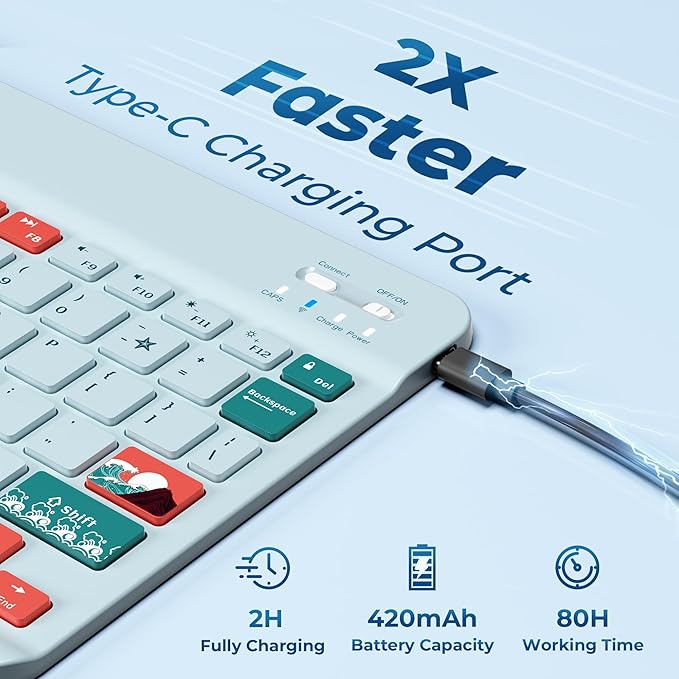 - ππ Universal Bluetooth 5.0 Compatibility:Seamlessly connects to iOS/iPadOS/Android/Windows/Mac devices, including:βοΈ Apple: iPad Pro M4 (13β/11β), iPad Air M3/M2, iPad Mini A17 Pro.βοΈ Galaxy Tab S9/S8 Series.βοΈ Other Brands: Fire Tablet, Surface Pro & 10,000+ Bluetooth devices
