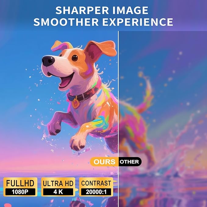 - High Definition Projection: Enjoy stunning visuals with 1080P resolution, perfect for movie nights and gaming sessions at home or outdoors