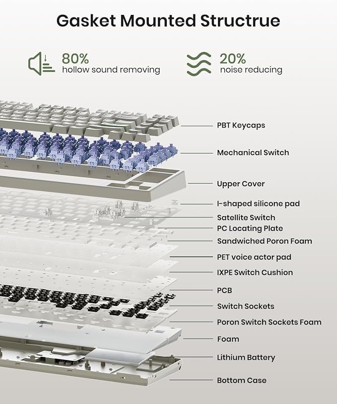 - 【Incredible Typing Experience Starts from Kisnt】Designed with your comfort in mind, this clacky keyboard is absorbing sound effectively. Enhanced with base dampener, along with layers of sound-dampening foam, it delivers a satisfying “thocky” sound, Less hollow sounding, just indulge in pure typing bliss. If you're looking to upgrade from traditional keyboards to a creamy one with every keystroke feel consistent, the Kisnt gasket mounted mechanical keyboard is definitel your best budget choice.