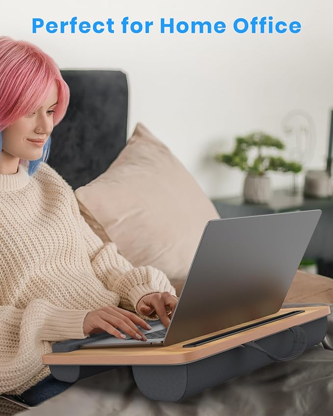 - Lap Desk for Laptop with Cushion: The hollow bottom design ensures ventilation, keeping you comfortable during extended use. Filled with high-quality pellets, it evenly distributes weight and eliminates pressure points.