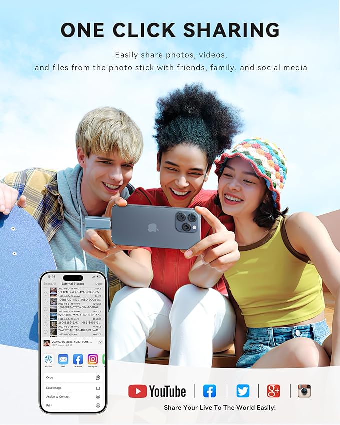 - Lightning-Fast Transfers, Enjoy Anywhere: This iphone storage flash drive for photos uses high-speed ports and high-quality flash memory chips for rapid data transfer, storing your favorite pictures, videos, and music. Whether it's large files, high-resolution photos, or HD videos, it completes the task quickly, saving you time. Seamlessly plug and play via the app on your iPhone or iPad anytime, anywhere. No internet or WiFi required.