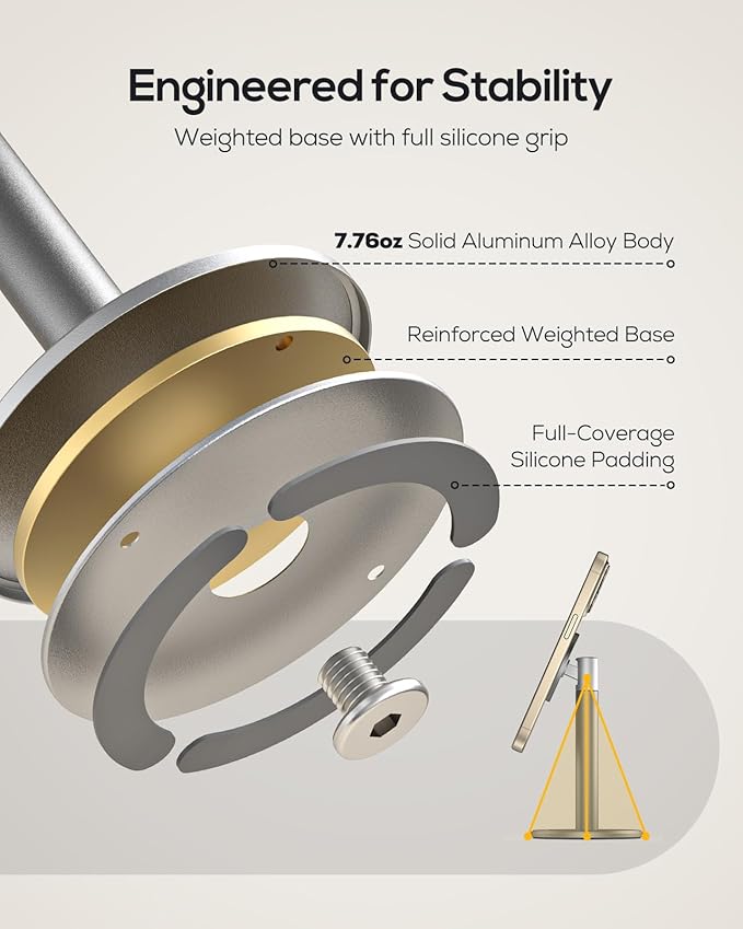 - 7.76oz Duty Full Aluminum Metal Base: Different from light plastic materials, this magnetic stand crafted entirely from heavy-duty aluminum alloy, with superior quality and absolute stability, 2000+ cycle stability test and zero shake, guarantees your screen touch.