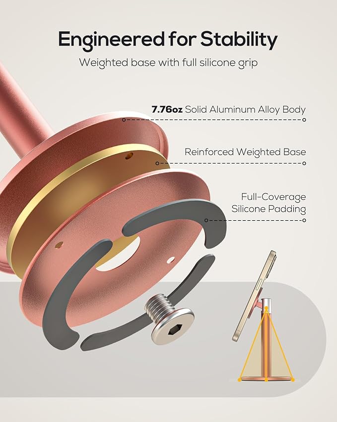 - 7.76oz Duty Full Aluminum Metal Base: Different from light plastic materials, this magnetic stand crafted entirely from heavy-duty aluminum alloy, with superior quality and absolute stability, 2000+ cycle stability test and zero shake, guarantees your screen touch.