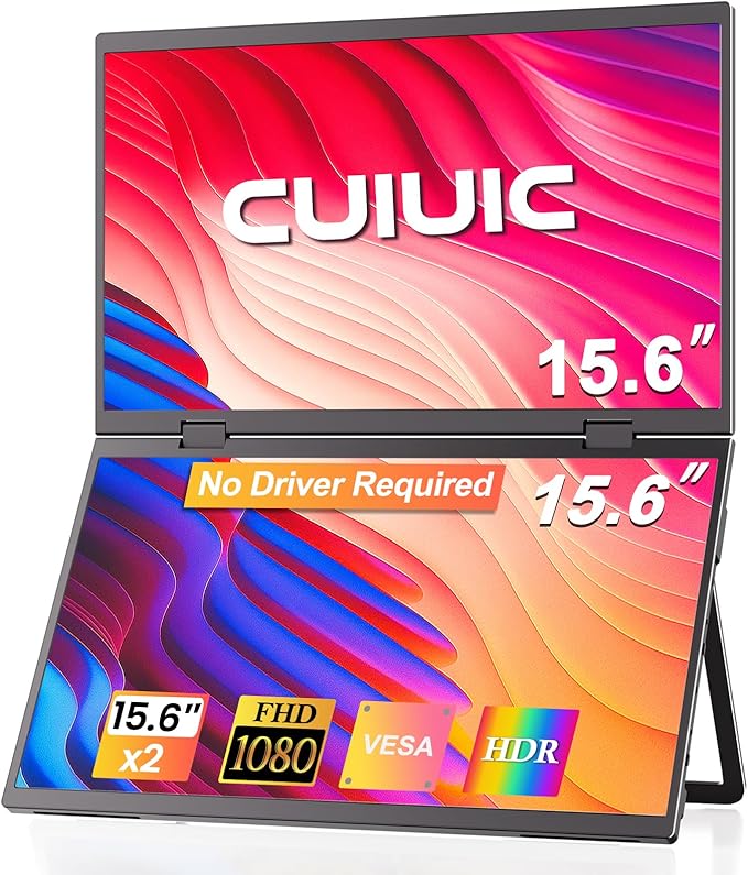 - Plug & Play, Easy Setup-Discover the game-changing difference with CUIUIC's first-ever driver-free dual-screen monitor! Unlike traditional dual monitors that require tedious driver installations, our innovative design simplifies the process, eliminating errors and complexities; Just connect your devices with a single Type-C cable and enjoy seamless dual-screen display; Kind tips: For a better experience, it's recommended to connect the power supply