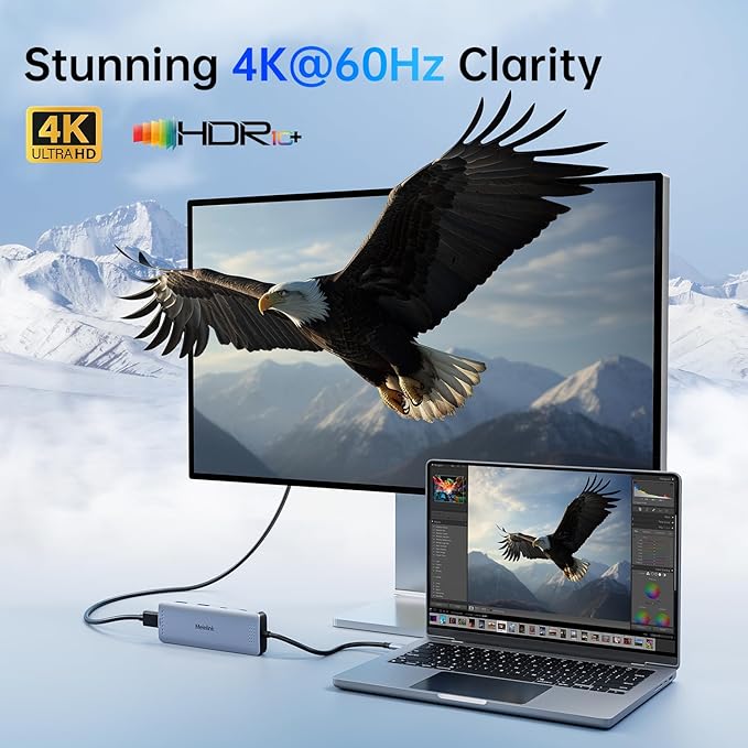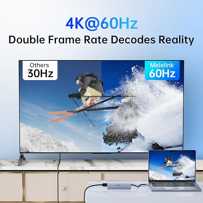 - 4K@60Hz USB-C to HDMI Hub: This Macbook pro air accessories delivers stunning 4K@60Hz (3840ร2160) resolution, with downscaling support for 2K@120Hz and 1080P. This macbook adapter multiport allows to mirror or extend your laptop screens or monitors by connecting monitors tvs projectors with hdmi ports. Note: Your USB-C port must support video output (DisplayPort Alt Mode or Thunderbolt) for the adapter to functionโotherwise, no signal will be transmitted.