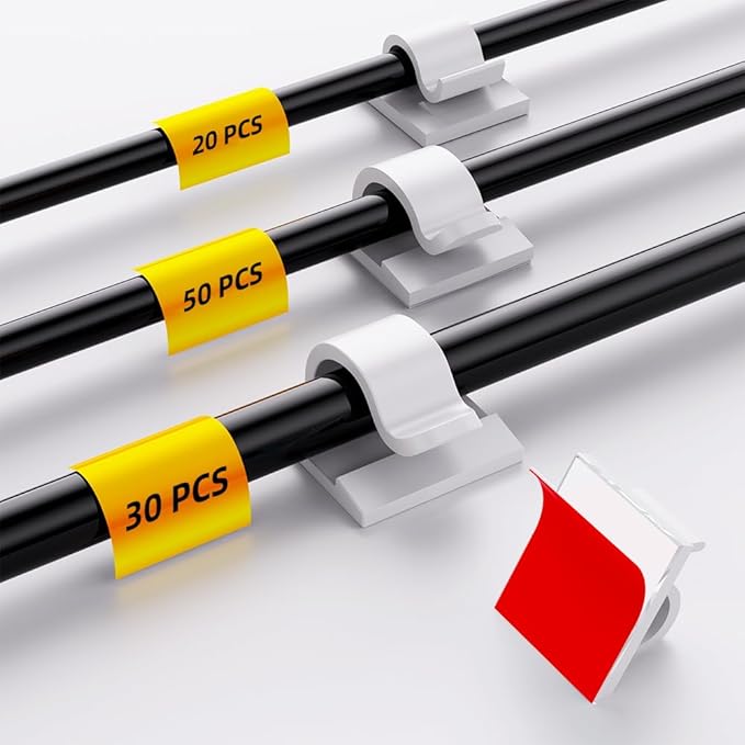 - Strong Adhesive: Made of PA66 material and upgraded adhesive, these cable clips can firmly hold cables, wires, and cords in place, remove without any residues and damage. Works on all clean surfaces like desks, walls, cabinets, wood, ceramics, metal, et