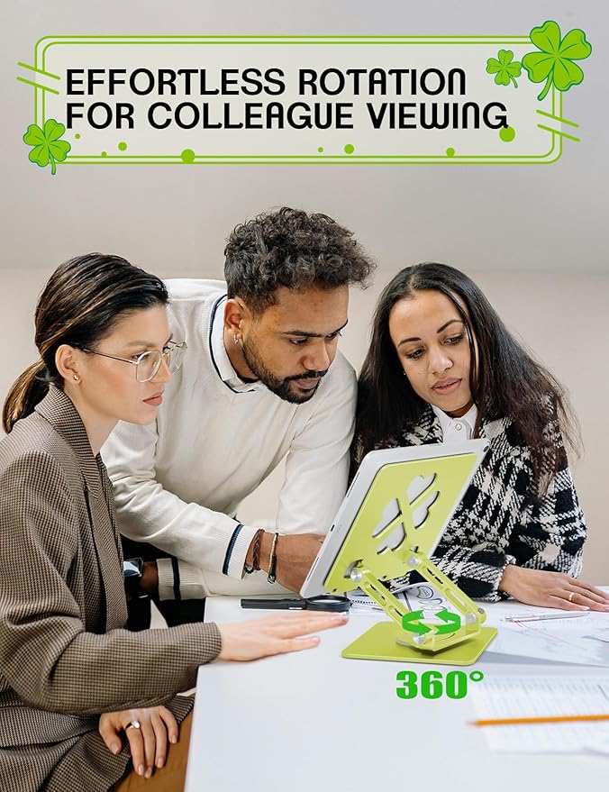 - 360° Rotating iPad Stand:This iPad stand features a 360° rotating base, letting you easily switch between landscape and portrait modes. Perfect for video calls, meetings, and online learning, it enhances your desk setup with flexibility and convenience
