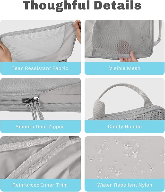 - 60% Space Savings with Compression, exclusive middle zipper transforms these compression packing cubes into compact units, reducing volume by 60% to fit more essentials. Achieve wrinkle-free packing for overseas journeys while the smooth zippers glide effortlessly, travel compression bags built for packing travel must haves efficiently.