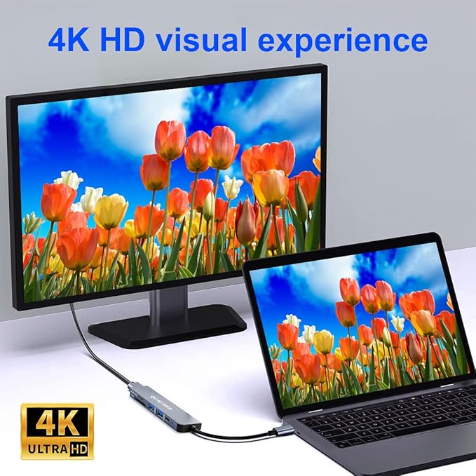 - 4K Macbook HDMI Adapter:Experience cinema-grade clarity with the usb c hub hdmi port! This usb c to hdmi multiport adapter delivers crystal-clear 4K@30Hz video, turning mundane business trips into movie nights.This usb c to hdmi multiport adapter transforms hotel TVs into 4K workstations. Designers will love mirroring 3D renders, while gamers dominate on bigger screens. The macbook usb c hub isn't just for work β it's your entertainment upgrade