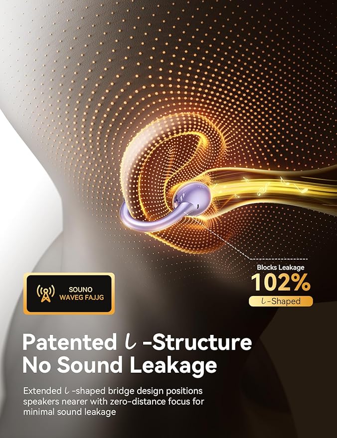 - 【All-Day Comfort】Enjoy superior sound and lasting comfort with our L-shaped open ear clip on design. By positioning the earbuds closer to the ear canal, they deliver clearer, more precise audio while minimizing sound leakage. The open-ear style ensures all-day comfort and keeps you aware of your surroundings—perfect for workouts or daily use. Crafted from high-elastic, skin-friendly silicone and weighing only 4.9g, these clip on earbuds offer a secure, ultra-light fit. Whether you're running, working, or relaxing, the ergonomic design stays comfortably in place—even during extended wear