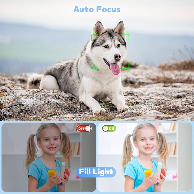 - 🤳【Dual Screen + Fill Light for Vlogging】 2.8" main LCD + front selfie screen with built-in fill light, ideal for YouTube creators. Auto-framing ensures perfect shots even in low-light conditions.