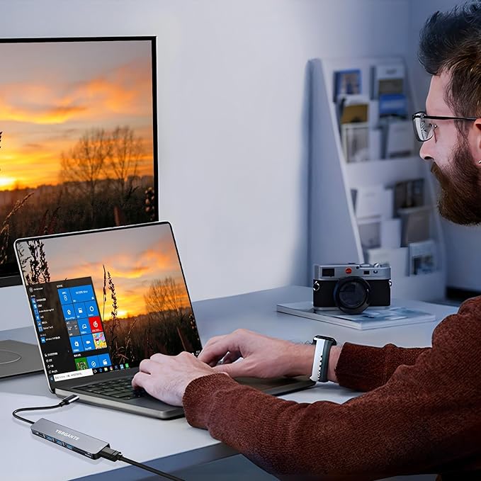 - Mac USB C Hub :With universal compatibility, this USB C dongle is the ideal solution for all your devices. Whether you're using a MacBook USB C hub, MacBook Air USB C hub, or even an iPad USB C hub, this multiport USB adapter works seamlessly across laptops and smartphones. Enjoy plug-and-play ease, whether you need Macbook Air adapter multiport, USB C docking station, or a computer port hub for enhanced connectivity