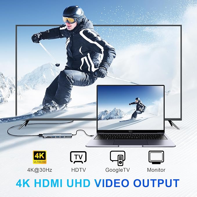 - Vibrant 4K HDMI Display via USB C Hub:Experience exceptional 4K visuals using this USB C HDMI hub. Ideal for extending or mirroring your screen to an HDTV, this USB-C hub offers clear, sharp displays for MacBook Air users and other laptops. Enjoy streaming movies, giving presentations, or enhancing your workspace with a seamless transition from your MacBook USB C hub to any USB C to HDMI multiport adapter setup