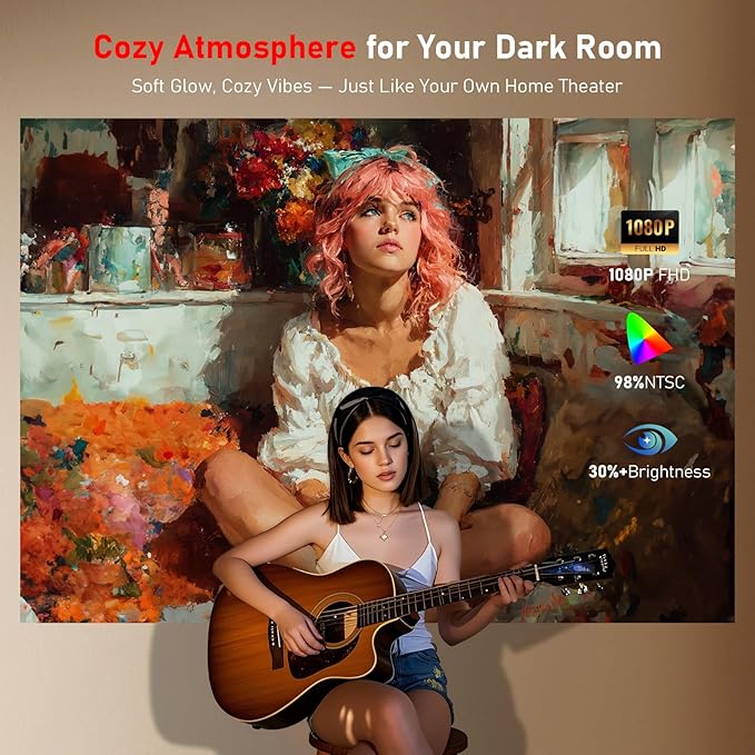 - [Full HD 1080P Clarity | 1.19:1 Short Throw] N5 1080P projector supports Full HD 1080P resolution with a premium LCD optical engine and 98% color gamut, providing vibrant, lifelike colors and razor-sharp details, even in low-light settings. Perfect for cozy, dark rooms. Thanks to its 1.19:1 short throw ratio, you can enjoy a massive 40"–180" screen from just a few feet away—on your desk, kitchen counter, or nightstand. And with 50% digital zoom, you can shrink the image without ever moving the TV projector. Whether you're binge-watching under the blankets or hosting a dorm room movie night, this home theater projector was made to transform dark rooms into cozy theaters