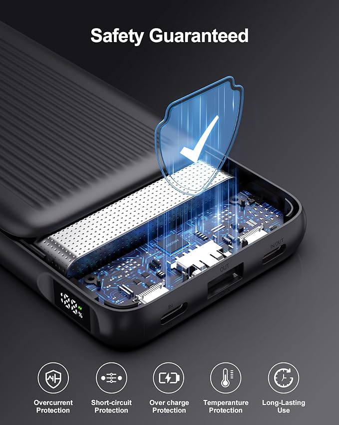 - 【Slim Travel Essential】 40% Thinner & 225g Light, At just 13.9 x 6.9 x 1.6cm , this ultra-thin portable power bank fits pockets/purses effortlessly. Ideal for flights, hikes, or daily commutes—18% smaller & 32% lighter vs rivals. Lightweight and compact, it is a must-have item for travel and outdoor activities