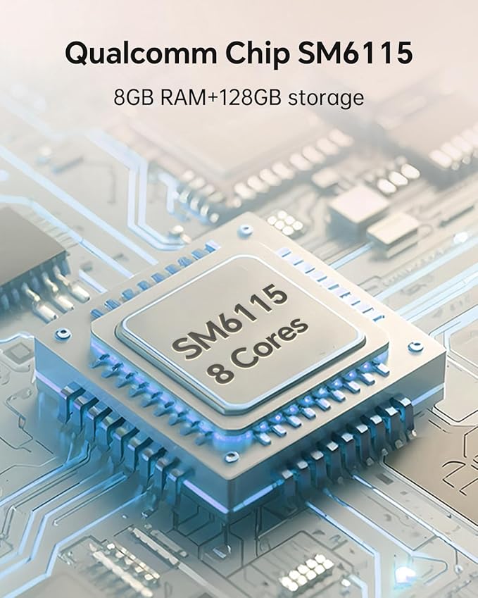 - SM6115 CPU & 8G+128GB: Powered by Qualcomm Chip SM6115, along with 8GB RAM and 128GB storage, you can enjoy seamless streaming and fast performance when using apps like Netflix or YouTube on this portable smart screen