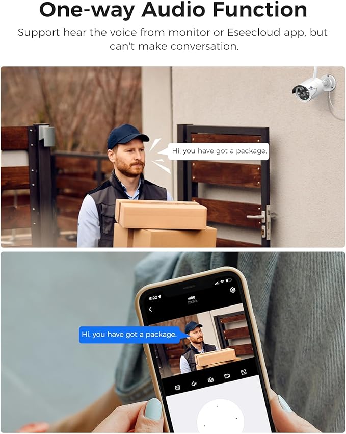 - 【Night Vision & One-Way Audio】 4K NVR + 3MP cameras capture sharp details even in darkness, eliminating blind spots. Surveillance camera system enhance security measures with the listen in real-time without revealing your presence-no accidental mic leaks or unwanted attention.