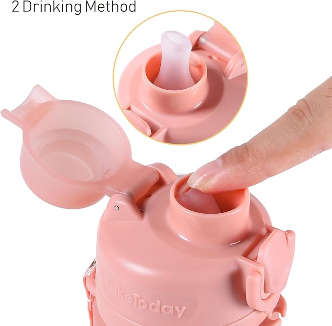 TakeToday Collapsible Water Bottles 20oz, Leak Proof, BPA-Free, Foldable Silicone Travel Water Bottle with Straw Strap for Cycling, Hiking, Outdoors