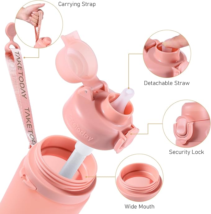 - [Sturdy] The TakeToday collapsible water bottle is composed of high-quality food grade silicone. Unlike glass cups and plastic bottles, which are easily broken, the bottle body is soft and robust, able to withstand dropping, squashing, smashing, and hits, so you can enjoy using it without worry