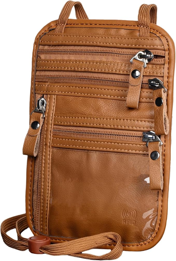 Neck Wallet - Rfid Wallet Women - passport holder for travel - Travel Wallet Passport Holder For Travel Women - 10.3x6.8inch (Yellowish Brown)