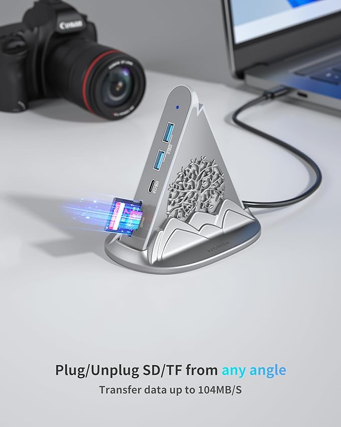 - Flexible Connectivity, Stable Placement, and Space-Saving Design: The 1.6-ft (48cm) cable provides convenient connection options, the peak-shaped base ensures reliable and stable placement of the device, and the 8-in-1 adapter helps save space on your desk.