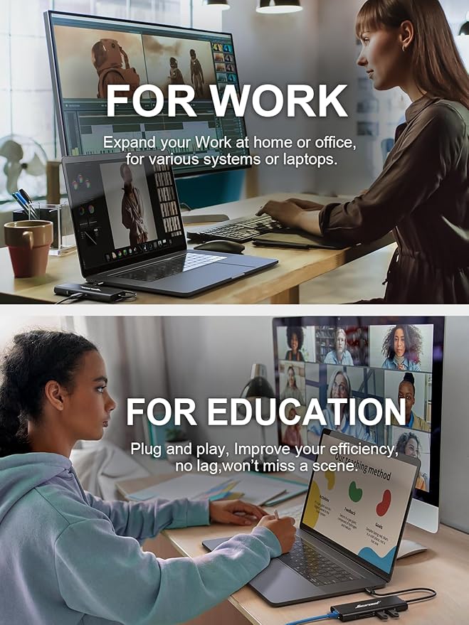 - Wide Compatibility: This usb c dongle compatible with a wide range of USB-C or Thunderbolt 3/4 laptops, such as for MacBook Pro/Air, iPad, Del, HP and more, ideal for home and office use